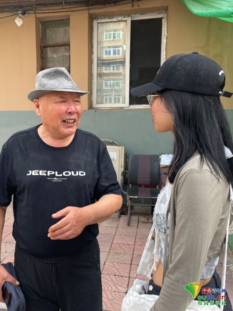 圖為小隊隊員走訪小區民眾,傾聽民眾對環境的意見并和他進行親切的交流。