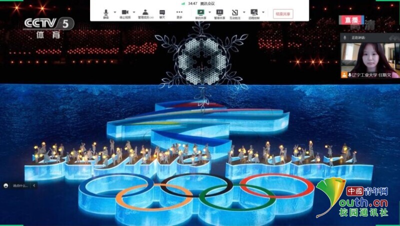 圖為實踐小組與留守兒童線上觀看北京冬奧會回放。