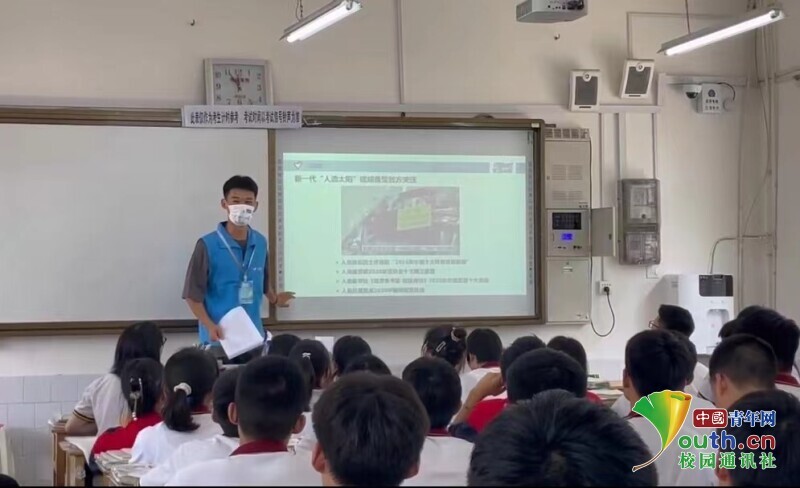 圖為團隊成員為高中生講解“人造太陽”。中國青年網通訊員 張澤陽 攝