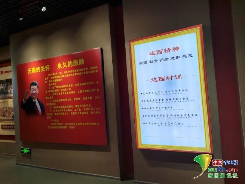 圖為達(dá)西精神和達(dá)西村訓(xùn)的照片。中國(guó)青年網(wǎng)通訊員謝欣瑤攝