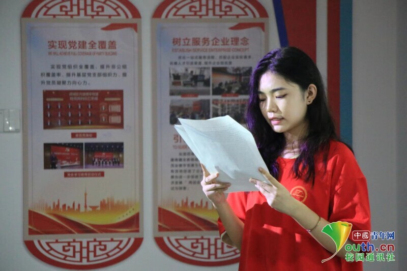 圖為團(tuán)隊(duì)成員古晴進(jìn)行黨史教育時(shí)的照片。中國青年網(wǎng)通訊員辛雨澤攝