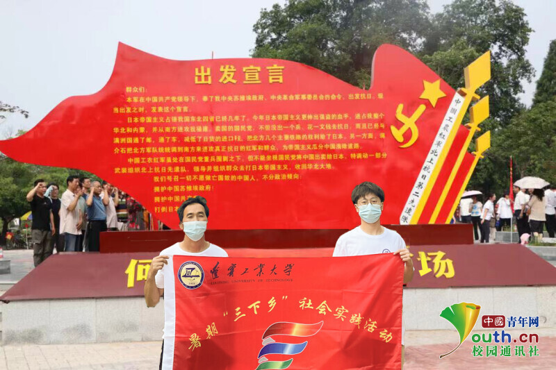 中國青年網信陽8月8日電(通訊員 李佳陽 古晴)為扎實推進對黨史的學習教育,追尋紅色足跡。7月17日,遼寧工業大學紅色搖籃團隊成員出發前往何家沖紀念園和紅25軍紀念館,通過以重走長征路為特色內容開展一系列活動共同追尋先烈足跡,并采用線上與線下結合方式感受昔日崢嶸歲月。實踐團成員在學習黨史的同時也在紅色景點留下了屬于自己的一抹足跡。