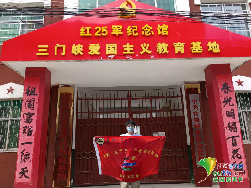 圖為實踐團成員上官寶興在紅25軍紀念館照相留念。 中國青年網通訊員 上官寶興 攝
