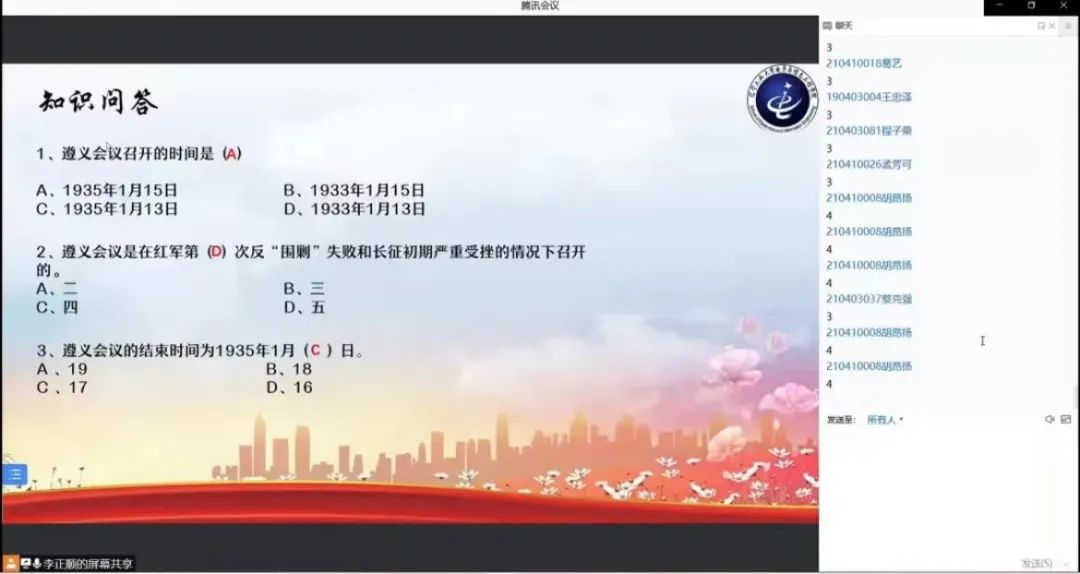 團會第五項:遵義會議相關知識問答。共九名同學成功參與了答題。