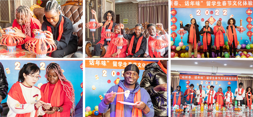 1月25日,正值農(nóng)歷小年,國際教育學(xué)院為在校留學(xué)生們舉辦了2022年“迎新春,話年味”留學(xué)生春節(jié)文化體驗活動。貼春聯(lián)、掛拉花、手工制作大紅燈籠、包餃子等一系列民俗文化活動,讓留學(xué)生體驗了傳統(tǒng)的中國春節(jié),年味十足,師生們一起喜迎虎年的到來。