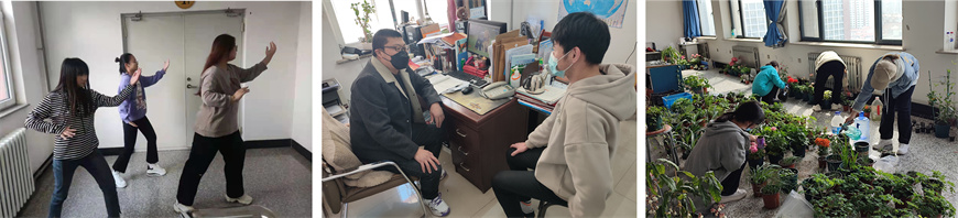 結合勞動教育,開展特色活動。組織學生對圖書館走廊等上課的公共環境進行打掃和消毒,并對花草等植物進行呵護打理。學院分團委宣傳部舉辦“文薈杯”寫作大賽,豐富學生們的校園文化生活。學院開展了一系列愉悅心情,強體健身活動,如以寢室為單位打太極拳,以班級為單位跳廣場舞,鼓勵學生走出寢室,增加體育鍛煉。