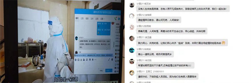 理學院在嚴格落實學校疫情防控總體安排的基礎上,通過在線教研,進一步規范教學進度,細化每節課教學任務,統籌推進“停課不停教”。近日,根據學校《關于在疫情防控工作中發揮黨組織戰斗堡壘作用和廣大黨員先鋒模范作用的通知》通知的相關要求,學院黨委號召全體教師黨員在網課中增強育人實效,使網絡課堂“增值”,讓學生在戰疫中成長。理學院教師黨員第一時間積極行動起來,除了認真講好自己所教授的理論知識外,把偉大的抗疫精神融入課程思政,課間推送的歌曲MV《隔空擁抱》不僅讓學生積極思考:誰在為我們構筑安全防線?新時代最可愛的人又有誰?而且引發了學生的共鳴:致敬最美戰疫先鋒;青春戰“疫”,我們不缺席!理學院教師黨員“疫”起努力,讓黨旗在線上戰疫“責任田”上高高飄揚。網絡課堂的課間分享潛移默化地浸潤了學生心靈,同時引導學生積極配合學校施行的精準疫情防控措施,在同學中積極傳播防疫戰疫正能量,共護校園平安,一起向未來!(文字圖片由理學院提供)